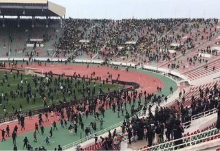 وألحقت خسائر مادية بتجهيزات الملعب ومعداته.