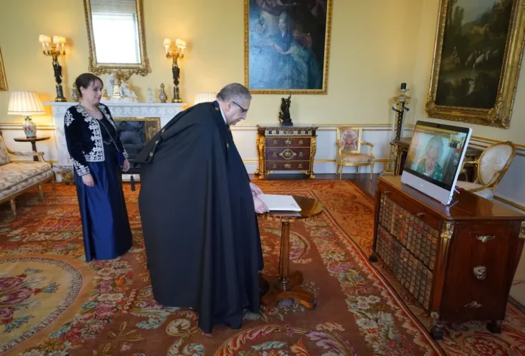 وجاء في تغريدة للديوان الملكي البريطاني على صفحته الرسمية عبر تويتر “استقبلت الملكة إليزابيث سفير الجزائر لدى المملكة المتحدة، عبر فيديو مباشر من قلعة وندسور إلى قصر باكنغهام”.