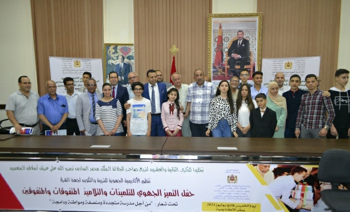 تخليدا للذكرى الثانية والعشرين لتربّع صاحب الجلالة المنصور بالله الملك محمد السادس على عرش أسلافه الميامين، نظمت الأكاديمية الجهوية للتربية والتكوين لجهة الشرق يومه الخميس فاتح يوليوز 2021، حفل التميز الجهوي تحت شعار : “من أجل مدرسة متجددة ومنصفة ومواطنة ودامجة” لفائدة التلميذات والتلاميذ المتفوقات والمتفوقين بجهة الشرق بمختلف المستويات والأسلاك خلال الموسم الدراسي الحالي 2020/2021.