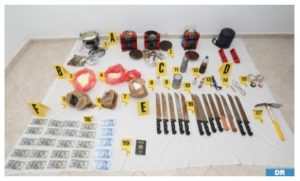 كما مكنت عمليات التفتيش، التي لازالت متواصلة، في باقي منازل أعضاء هذه الخلية من حجز منظار للرؤية عن بعد، ومجسمين لأسلحة نارية مقلدة، ودعامات رقمية وأجهزة إلكترونية، وقناع حاجب للمعطيات التشخيصية، ورسم حائطي يتضمن شعار تنظيم “داعش”، بالإضافة إلى مخطوطات ورقية تحتوي على رصد دقيق لبعض المواقع والمنشآت المستهدفة.
