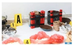 وأضاف المصدر ذاته أنه في أعقاب عمليات التدخل التي مكنت من تحييد الخطر وتوقيف المشتبه فيهم، باشر عمداء وضباط المكتب المركزي للأبحاث القضائية عمليات التفتيش في منازل أعضاء هذه الخلية الإرهابية، والتي أسفرت عن حجز أجسام ناسفة في طور التركيب بمنزل المشتبه فيهما بمنطقة تامسنا، وهي عبارة عن أربع قنينات غاز معدلة تحتوي على مسامير ومواد كيميائية وموصولة بأنابيب وأسلاك كهربائية متصلة جميعها بأجهزة هواتف محمولة قصد التفجير عن بعد.