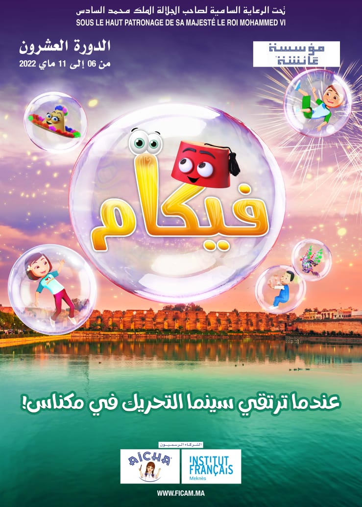 تحت الرعاية السامية لصاحب الجلالة الملك محمد السادس، تنظم مؤسسة عائشة بشراكة مع المعهد الفرنسي بمكناس، الدورة العشرين للمهرجان الدولي لسينما التحريك “فيكام”، خلال الفترة المتراوحة ما بين الجمعة 6 ماي والأربعاء 11 ماي 2022.