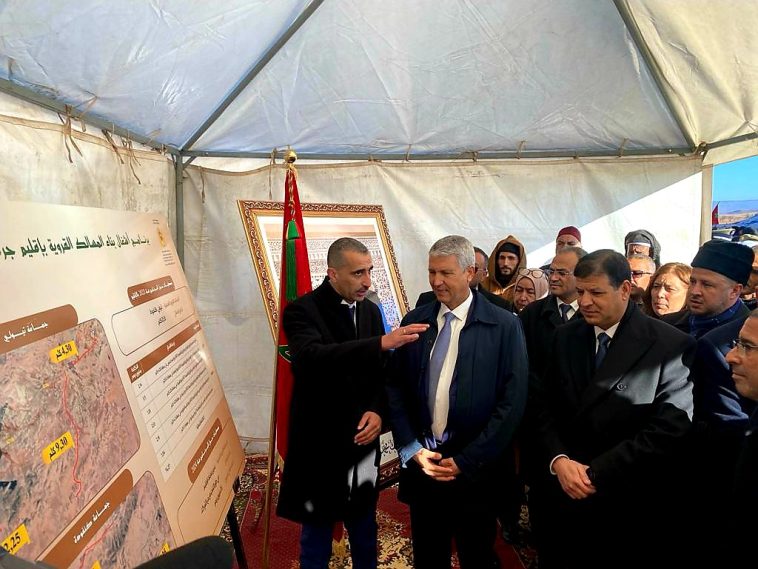 بالجماعة الترابية تيولي اطلع الوزير على برنامج تهيئة المسالك القروية بإقليم جرادة للفترة 2023 – 2024. يشمل هذا البرنامج تهيئة 25,8 كلم من المسالك القروية باستثمار قدره حوالي 35 مليون درهم.
