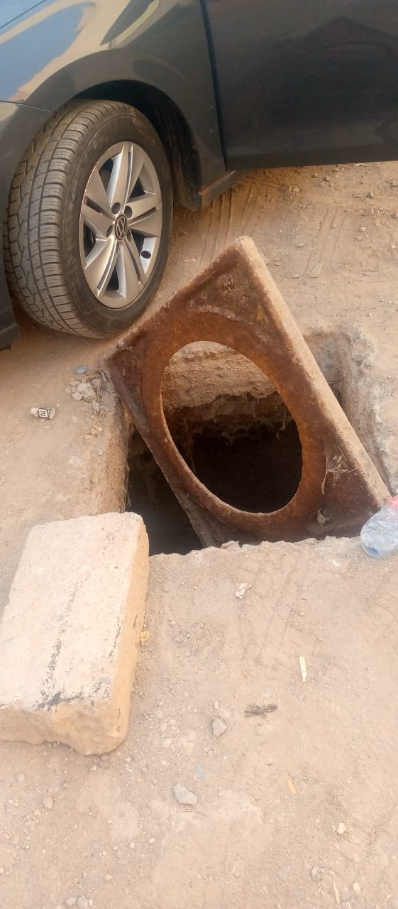 البالوعات المسروقة أو المختفية أو المهترئة التي تكسرت بسبب ثقل المركبات من شاحنات وسيارات وهوندات ودراجات ثلاثة العجلات وعربات مجرورة محملة تخلف حفرا تشكل خطرا على المرتادين من مواطنين راجلين أو سائقين أو عابرين وأطفال صغار.