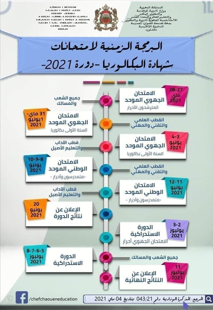 البرمجة الزمنية لامتحانات شهادة الباكالوريا – دورة 2021 –