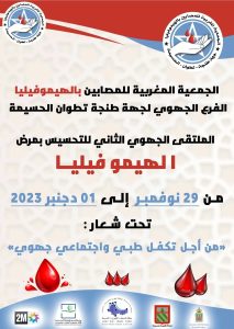 تنظم الجمعية المغربية للمصابين بالهيموفيليا الفرع الجهوي لجهة طنجة – تطوان – الحسيمة، الملتقى الجهوي الثاني التحسيسي للهيموفيليا، من 29 نوفمبر إلى 01 دجنبر 2023، تحت شعار: ”من أجل تكفل طبي واجتماعي جهوي”.