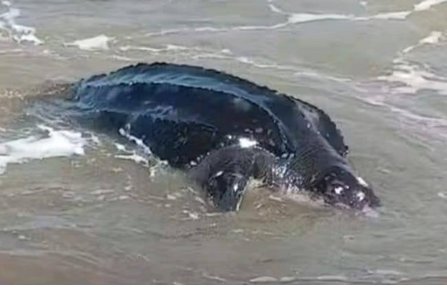 الحسيمة…جنوح سلحفاة جلدية الظهر بشاطئ مسطاسة