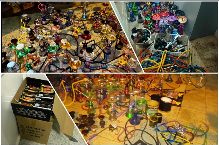 وفي عملية مماثلة، قامت نفس السلطة، يوم الجمعة 29 مارس 2024،  حوالي الساعة 11 ليلا، بمداهمة مقهى “الخيمة”، حيث تم خلال هذه العملية ضبط وحجز 55 نرجيلية، 01 كلغ من المعسل، 66 مجمر مخصص للشيشية، 03 أكياس من رأس أنبوب(pipe)، 30 وحدة من الجمر و الفحم، و 03 أرجل لمكبر صوت.