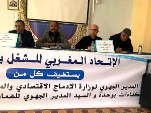 احتضن مقر الاتحاد المغربي للشغل بوجدة يوم الأحد 11 فبراير الجاري، لقاءا تواصليا أشرف عليه الإتحاد المحلي لنقابات وجدة، وأطره كل من المدير الجهوي للضمان الاجتماعي، وممثل عن المدير الجهوي لوزارة الإدماج الاقتصادي والمقاولة الصغرى والتشغيل والكفاءات.
