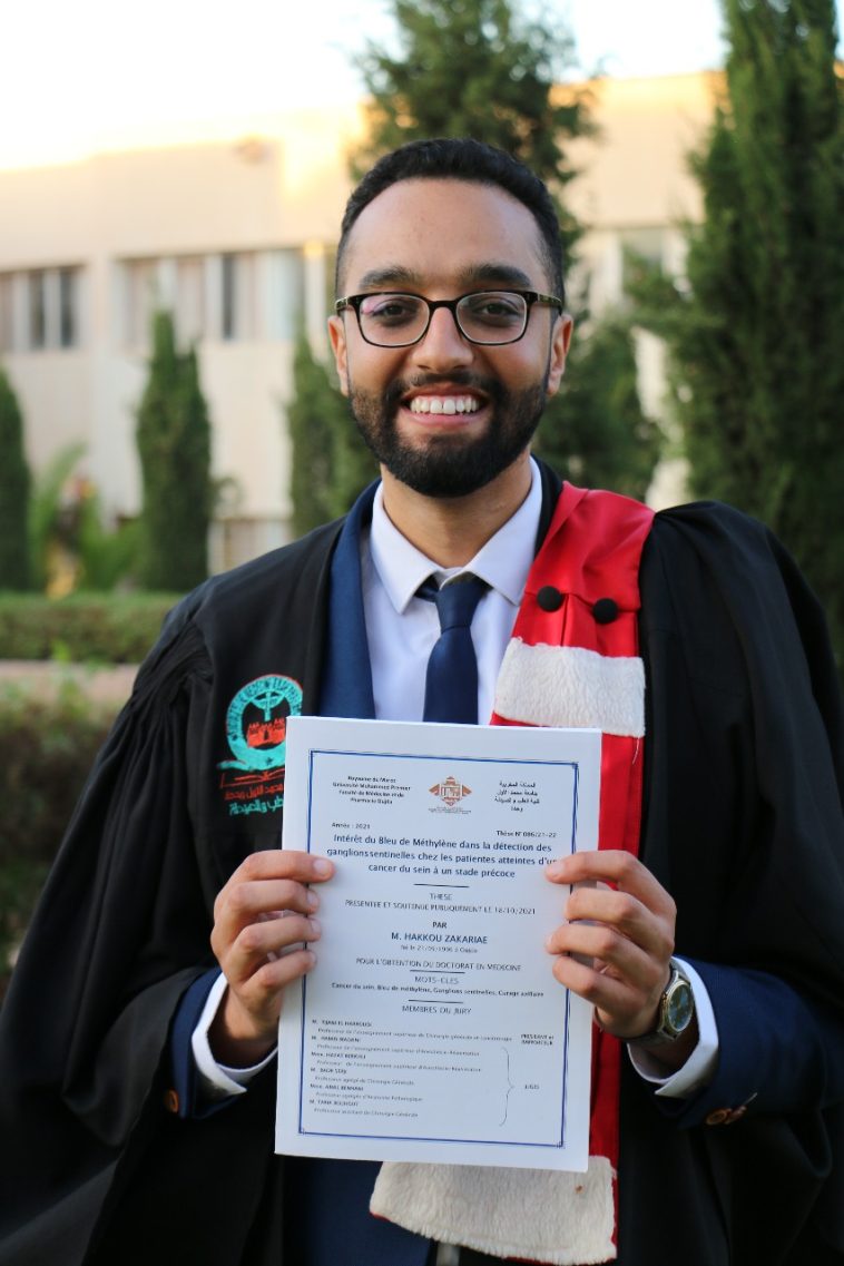 ناقش الطالب بكلية الطب والصيدلة بوجدة زكرياء هكو، أطروحته لنيل شهادة الدكتوراه في الطب حول موضوع: “أهمية ملون الميثيلين الأزرق في الكشف عن العقد الخافرة في مرضى سرطان الثدي في مراحله المبكرة”، وذلك يوم الإثنين 18 أكتوبر 2021.
