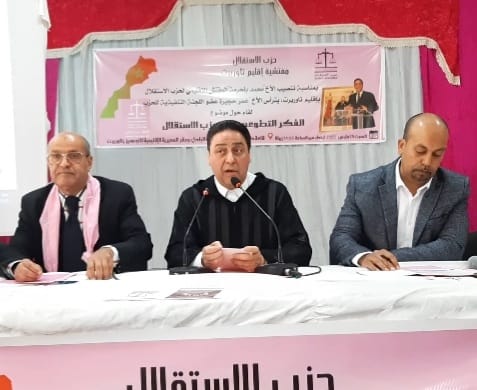 عضو اللجنة التنفيذية لحزب الاستقلال، بعد ظهر يوم السبت 29 مارس 2025، على حفل تنصيب الناشط السياسي والنقابي والجمعوي المتمرس والحكيم الأستاذ محمد بلحرمة مفتشا إقليميا للحزب بإقليم تاوريرت، بحضور رئيسي جماعتي تنشرفي وملقى الويدان والمنتخبين الاستقلاليين بمختلف جماعات إقليم تاوريرت، والكاتب الوطني لمهنيي النقل عبد الرحيم حنتارة، وكتاب فروع الحزب والقطاعات النقابية وهيئاته الموازية، وحشد غفير من مناضلي هذا الحزب العتيد من الجنسين، وعدد من الضيوف يمثلون بعض التنظيمات السياسية وجمعيات المجتمع المدني، الذين امتلأت بهم قاعة الاجتماعات الكبرى بمقر دار الشباب، وسط مدينة تاوريرت، التي احتضنت هذا اللقاء، عن آخرها حتى ضاقت بعدد الوافدين عليها رغم رحابتها، ففضل بعضهم متابعة فعاليات الملتقى خارج أسوارها عبر مكبر الصوت، حيث انطلق بتلاوة آيات بينات من الذكر الحكيم قبل أن يقف الجميع لترديد النشيد الوطني بشكل جماعي وحماسي ينم عن صدق وطنيتهم ثم ترديد نشيد الحزب الذي يحفظونه عن ظهر قلب.