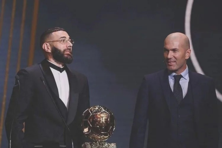 “سلّم زيدان، الذي كان العنصر الأساسي الذي أهدى فرنسا كأس العالم لأول مرة في عام 1998 ، تليها الكرة الذهبية في نفس العام الذي شهد ولادة كيليان مبابي، (سلَّم) الكرة الذهبية، مساء الإثنين 17 أكتوبر 2022، لمواطنه كريم بنزيمة، حدثٌ جعل الرئيس الفرنسي إيمانويل ماكرون يعلّق: “(…) بعد 24 عامًا من زيدان، كريم بنزيمة يهدي الكرة الذهبية إلى فرنسا”.