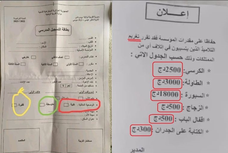 وقد اتخذ القرار على مستوى عالي، إثر توزيع هذه الوثيقة التي تم تداولها على منصات التواصل الاجتماعي والتي لقيت العديد من الردود لا سيما وأنها تطلب من التلاميذ تحديد الوضعية الاجتماعية لعائلاتهم إن كانت “فقيرة” أو “متوسطة الدخل” أو “غنية”.