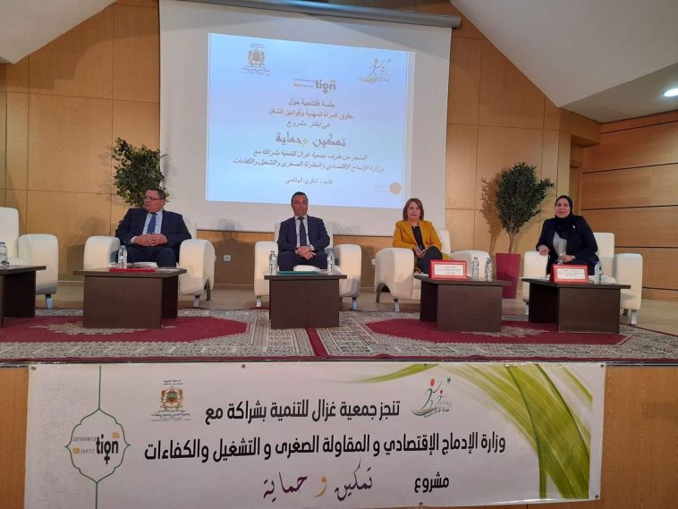 نظمت جمعية غزال للتنمية يوم الخميس 25 نونبر 2021 بالقطب الفلاحي مداغ ببركان لقاء افتتاحيا رسميا لمشروع تمكين وحماية، المنجز في إطار شراكة مع وزارة الإدماج الاقتصادي والمقاولة الصغرى والتشغيل والكفاءات، من أجل الرفع من النشاط الاقتصادي للمرأة وتعزيز مركزها القانوني في العمل.