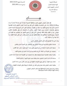 وأعلن العدول في بيانهم عن “مساندتهم لكل العدول المتابعين محليا ووطنيا بمجرد تراجع الشهود أو إنكارهم للشهادة “، مؤكدين “توقفهم محليا عن تلقي جميع الاشهادات اللفيفية إلى حين صدور قانون يحميهم”، وطالبوا المكتب التنفيذي ” بعقد اجتماع طارئ للنظر في الإشكالات المرتبطة بتلقي الشهادات اللفيفية “.