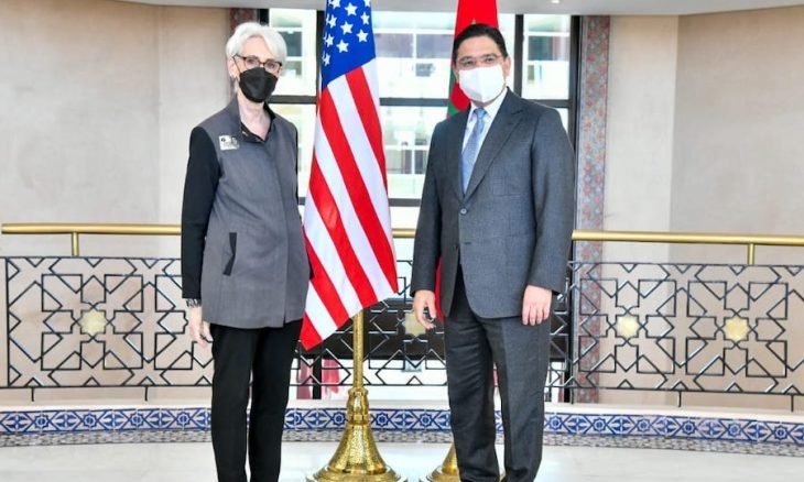 جاء ذلك في البيان المشترك الذي صدر عقب استقبال وزير الخارجية المغربي ناصر بوريطة، الثلاثاء 8 مارس 2022، نائبة وزير الخارجية الأمريكي، ويندي شيرمان، التي تقوم بزيارة إلى المملكة، ضمن جولة تشمل تركيا وإسبانيا والجزائر ومصر.