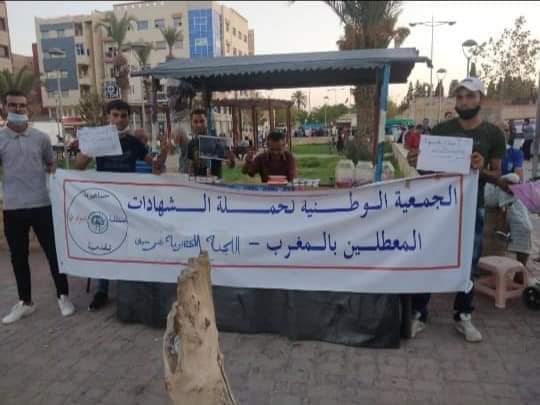خاضت اللجنة التحضيرية ـ فرع ڭرسيف ـ المنضوية تحت لواء الجمعية الوطنية لحملة الشهادات المعطلين بالمغرب، وقفة احتجاجية رمزية صامتة، يوم أمس الخميس 05 غشت الجاري، على الساعة السابعة مساء بساحة “جنان السبيل”.
