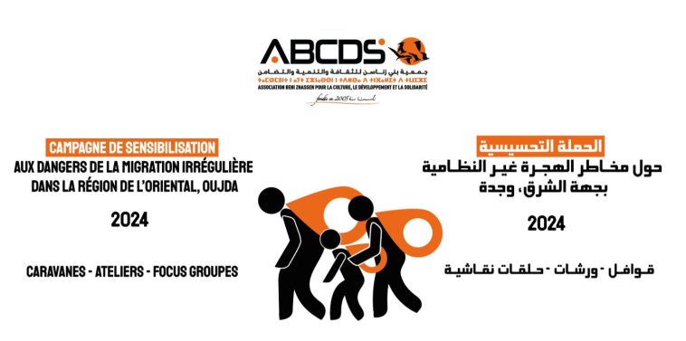 تم اليوم الخميس 25 يوليوز الجاري، تنظيم حملة تحسيسية حول مخاطر الهجرة غير النظامية بجهة الشرق، من طرف جمعية بني زناسن للثقافة والتنمية والتضامن (ABCDS).