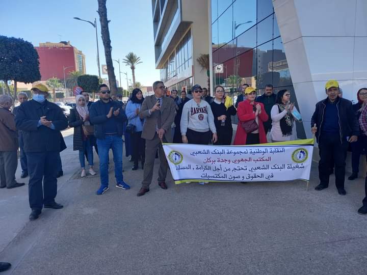 تنفيذا للتوصيات التي خرج بها المكتب الوطني لمجموعة البنك الشعبي، المنضوية تحت لواء الكونفدرالية الديموقراطية للشغل (CDT)، خلال اجتماعه الأخير ليوم 15 دجنبر الأخير، والذي بموجبه جرى التنديد بسياسة التماطل واللامبلاة التي طالت مطالب موظفي و شغيلة البنك المذكور ، استجاب الفرع النقابي الجهوي ( وجدة وبركان)، لدعوة المكتب الوطني بتنظيم وقفات احتجاجية، بمختلف الفروع الجهوية، حيث تظاهر قبيل عصر يوم الأربعاء الماضي، العشرات من الموظفين بالقرب من المقر الرئيسي للبنك الشعبي بوجدة، رافعين لافتات، ومرددين شعارات تدعو إلى صون المكتسبات، والاستجابة لمطالبهم المشروعة، وفي مقدمتها الرفع من الأجور.