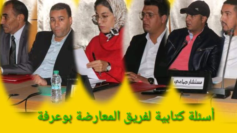 تقدم 06 أعضاء من فريق المعارضة، بالمجلس الجماعي لبوعرفة إقليم فجيج، نادية أقبوش، نورالدين قدراوي، محمد رمضاني، هشام عزة، عبد العزيز بنعبو، و يحي بهادي، اليوم 02 دجنبر الجاري، بثلاثة أسئلة كتابية، الى رئيس المجلس، وذلك طبقا للمادة 46 من القانون التنظيمي 113/14، وجاء السؤال الأول، حول مساهمة الجماعة في مشروع إنجاز المساحات الخضراء بشارع محمد السادس ببوعرفة، قرب ثانوية القاضي عياض، عن الكيفية التي تم بها تفويت صفقات تجهيزها، مع المطالبة بالوثائق التي تثبت ذلك، وقد أرسلت نسخة من هذا السؤال الى المجلس الأعلى للحسابات.