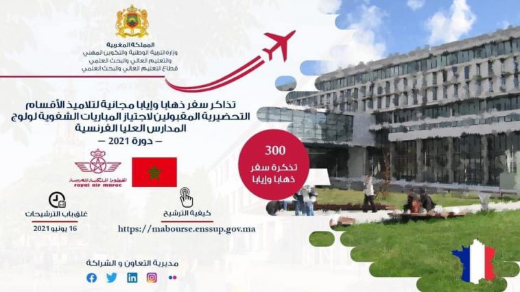 وضعت الخطوط الملكية المغربية، 300 تذكرة طيران مجانية ذهابا وإيابا، رهن إشارة التلاميذ المغاربة، المقبلين على اجتياز امتحانات ولوج المعاهد والمدارس العليا الفرنسية، في شعبتي الهندسة وإدارة الأعمال، برسم الموسم المقبل 2021 / 2022.