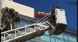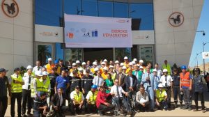 وتم بحسب هذه الخطة، إخلاء المبنى باتباع العلامات الإرشادية للوصول إلى نقطة التجمع الآمن، وتم استدعاء فريق الطوارئ من وحدات المطافئ، ووحدات الإنقاذ السريع والإسعاف، لتنفيذ عملية إنقاذ أحد العاملين المفترضين المحاصرين في أحد الطوابق العليا، باستخدام معدات الإنقاذ والسلالم الكهربائية لمواجهة الطوارئ المحتملة، ولرفع الوعي لدى الموظفين والعاملين حول كيفية مواجهة مثل هذه المواقف بهدوء.