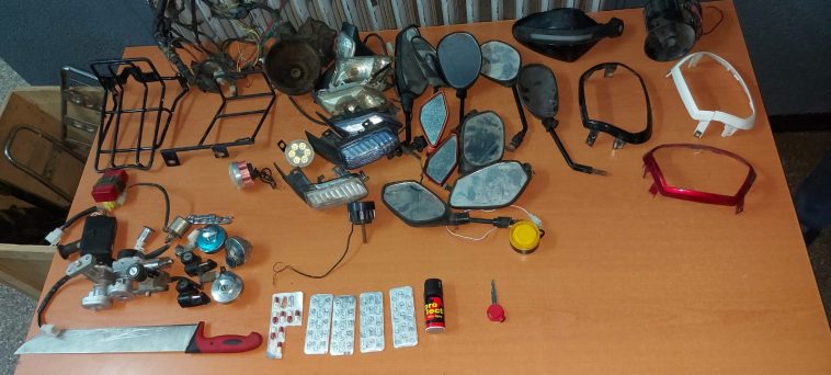 المعطيات الأولية للتحريات بينت ان المعني بالأمر يشكل موضوع أبحاث على الصعيد الوطني من أجل تكوين عصابة إجرامية تتعاطى لسرقة الدراجات النارية والتزوير واستعماله وشراء المسروق وخيانة الأمانة. فيما اسفرت عمليات التفتيش التي اجريت في إطار نفس القضية من حجز مجموعة قطع واكسسوارات مختلفة واقفال دراجات نارية مسروقة، وما مجموعه 60 قرصا طبيا مهلوسا نوع ريفوتريل 2 ملغ، و 8 اقراص نوع إيركا، وقنينة غاز مسيل للدموع، وسكين كبير الحجم، وهاتف نقال فضلا عن مبلغ مالي يشتبه في كونه من عائدات نشاطه المحظور.