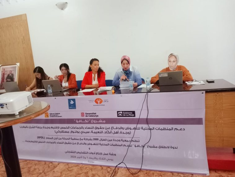 وعرف اللقاء، الذي تخللته مجموعة من المداخلات، طرح مشروع”تكافؤ” المنجز بشراكة مع الحركة من أجل السلام لدعم المنظمات المحلية، وذلك من أجل النهوض والدفاع عن حقوق النساء بالجماعات الخمس لإقليم وجدة، والتي تضم كلا من وجدة أنجاد، أهل أنجاد، النعيمة، سيدي بولنوار إلى جانب مستفركي.