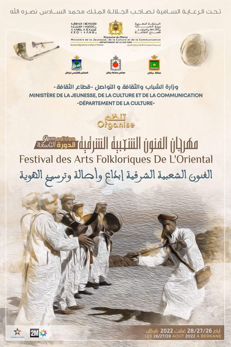 تحت الرعاية السامية لصاحب الجلالة الملك محمد السادس نصره الله، تنظم وزارة والثقافة والتواصل – قطاع الثقافة – وجماعة بركان، وبتعاون مع المجلس الإقليمي لبركان، في الفترة الممتدة من 26 إلى غاية 28 غشت 2022، مهرجان الفنون الشعبية الشرقية ببركان، تحت شعار: “الفنون الشعبية الشرقية، إبداع وأصالة وترسيخ هوية”.