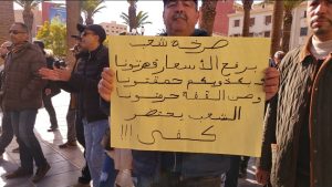 ورفع المحتجون في هذه المسيرة التي شهدت انخراط العنصر النسوي، شعارات منددة بارتفاع الأسعار، من قبيل:”كيف تعيش يا مسكين… المعيشة دارت جنحين”، “فوسفاط وجوج بحورا…عايشين عيشة مقهورة”…. ولافتات كتب عليها: “قهرتونا: غلاء الأسعار يقتل الفقراء ليعيس الأغنياء”، وغيرها من الشعارات القوية التي طالبت برحيل أخنوش بسبب عجز حكومته عن اتخاذ تدابير لإنهاء هذه الأزمة.