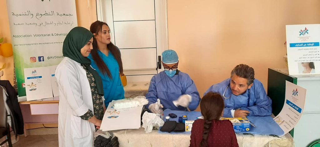 وفي جو احتفالي تغمره فرحة بلا حدود، نشطه البهلوان بطريقة تهريجه المضحكة جعلت الأطفال يتفاعلون معه بشكل كبير، قام فريق شبه طبي متمرس بأخذ عينات من الدم للكشف عن السكري وتعليم الأطفال في نفس الوقت كيفية أخذ عينات من الدم بطريقة علمية صحية، قبل توجيههم نحو المكان المخصص للنظافة بهدف غسل الأيدي والوجه وتنظيف الأسنان، مع العمل على توعيتهم، نظريا وعمليا، بالسلوكات الصحيحة لنظافة الجسم والملابس والمكان وكيفية الوقاية من الفيروسات بشكل عام.