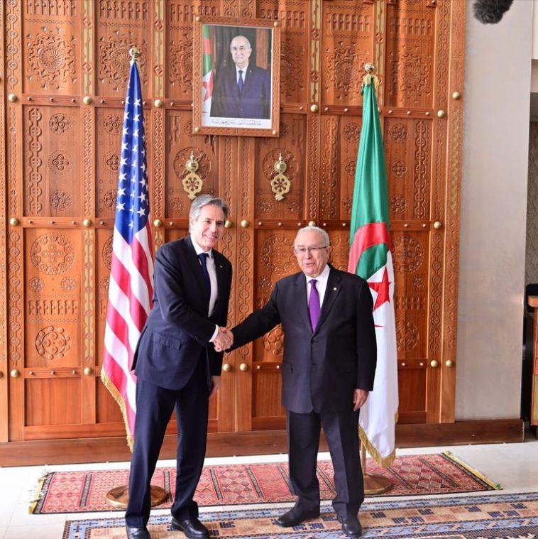وأجرى وزير الخارجية الجزائري رمطان لعمامرة جلسة مباحثات ثنائية وموسعة، أولى، مع نظيره الأمريكي أنتوني بلينكن، في زيارة هي الأولى من نوعها لوزير خارجية أمريكي منذ 22 عاماً.