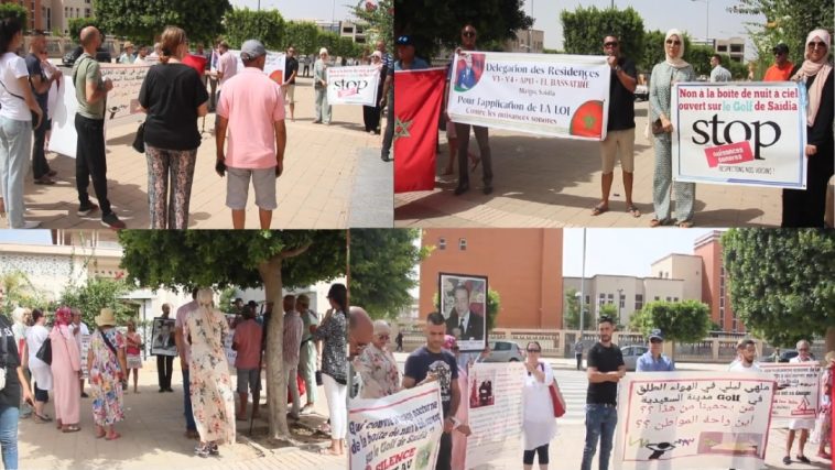 قاطنو الحي المتضررون رفعوا صورة الملك محمد السادس ولافتات كتب عليها شعارات تنديدية بالوضع الكارثي الذي غرقوا أو أُغرقوا فيه ومطالب برفع الضرر عنهم من قبيل ” مقهى ليلي في الهواء الطلق في Golf مدينة السعيدية. من يحمينا من هذا؟ أين راحة المواطن؟” و”Non à la boite de nuit à ciel ouvert sur le golf de Saidia . Stop aux nuisances sonore. Respectons nos voisins !” و”Délégation des résidences V3 – V4 – AP 13 El Bassatine Saidia. Pour l’aplication de la LOI contre les nuisances sonores”.