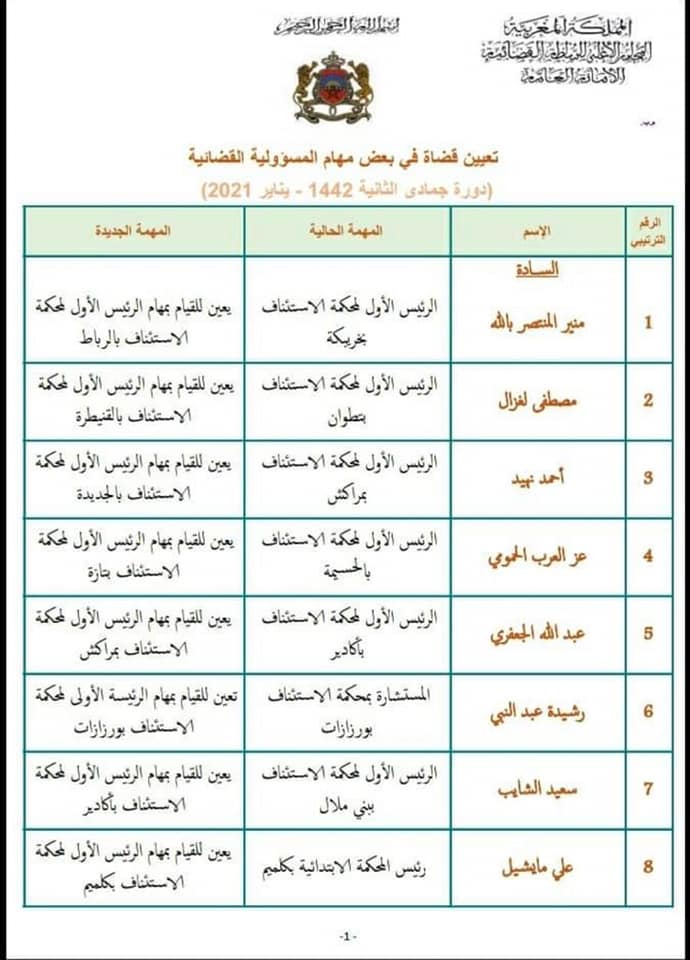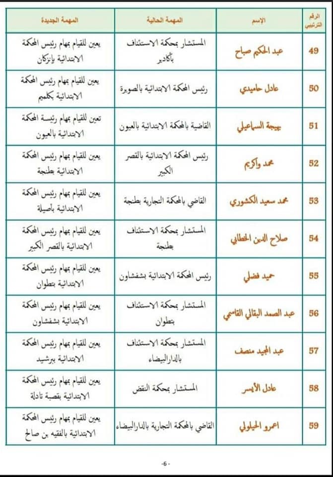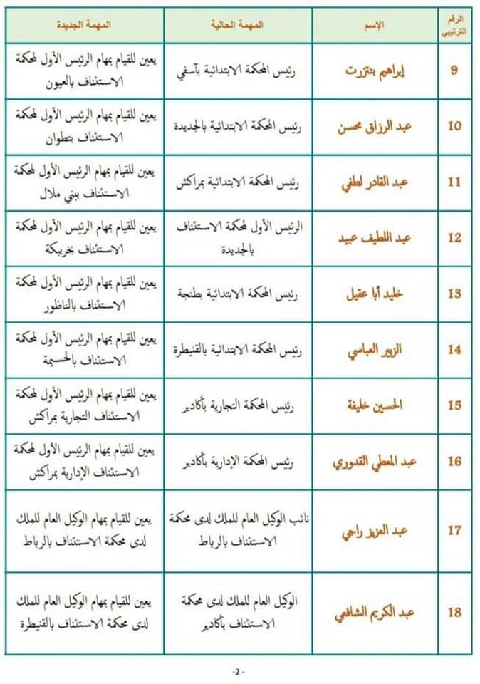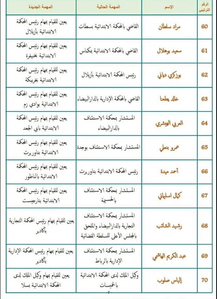 وهذه هي لائحة التعيينات الجديدة حسب موقع المجلس الأعلى للسلطة القضائية: